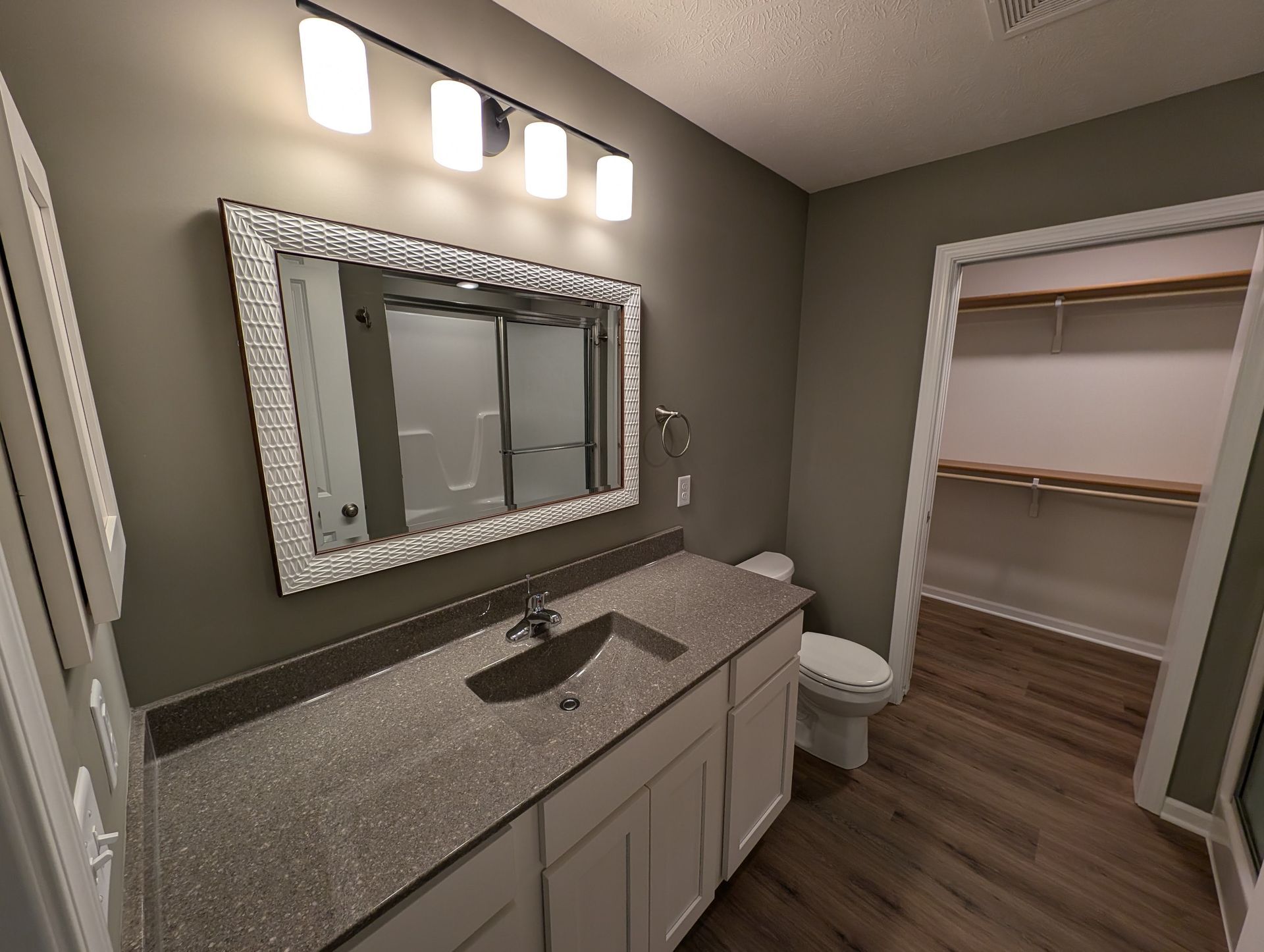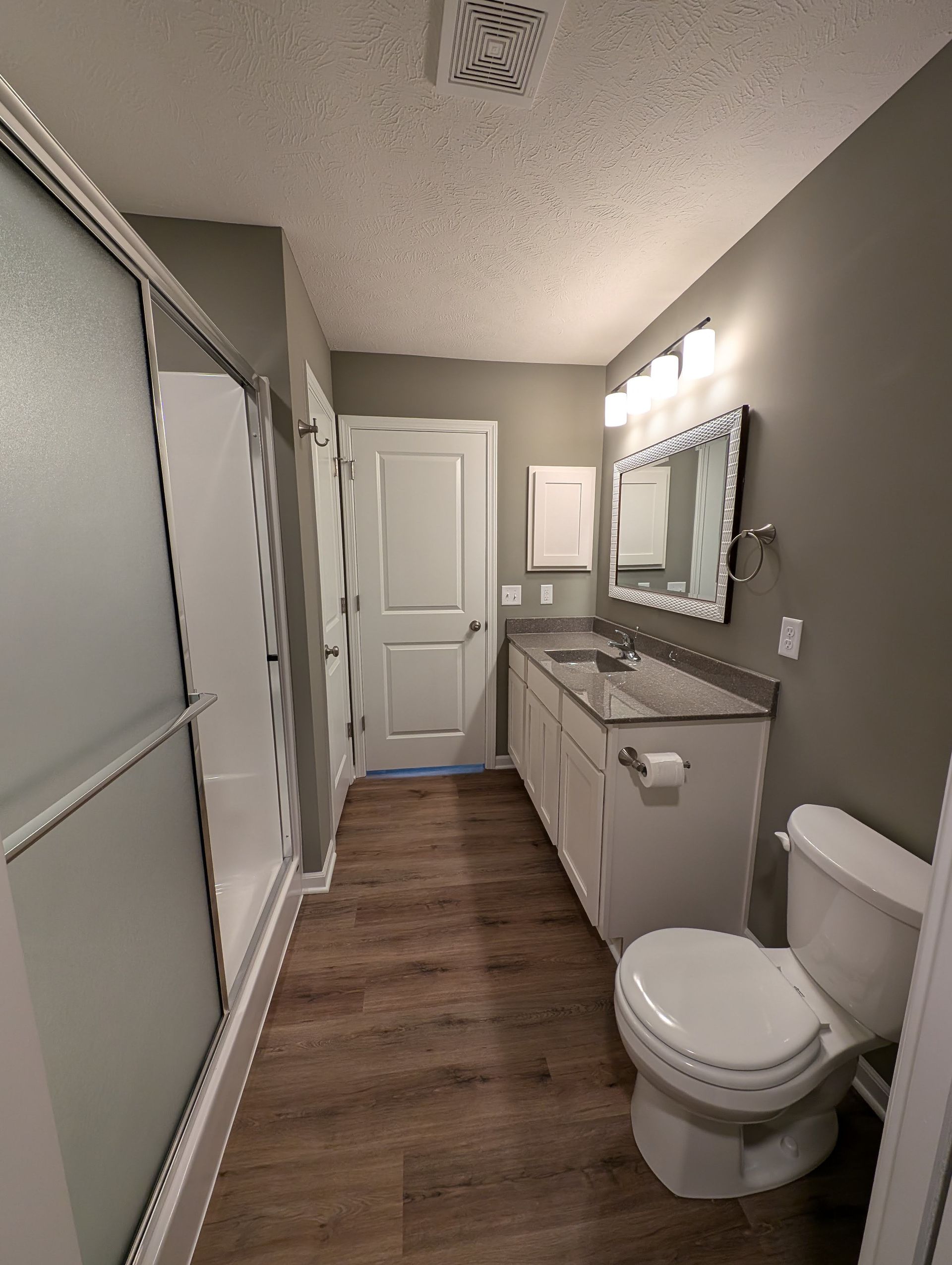 - En-suite primary bath w/ 5’ x 3’ shower w/ door, linen closet and walk-in closet
