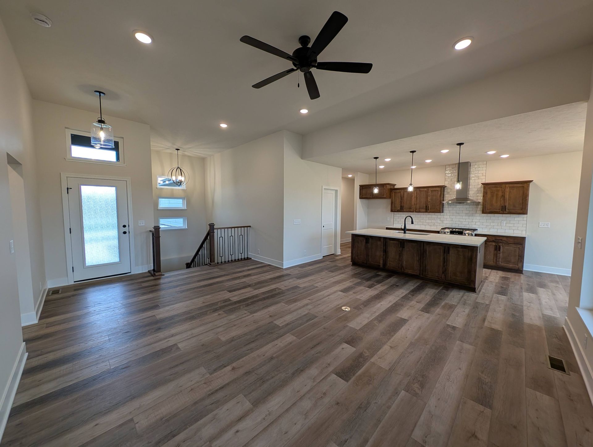 The Austin is a modern ranch designed for wider lots and acreages, offering 1,711 square feet on first-floor. The 3-bedroom, 2-bath home features an open-concept layout. The split-bedroom design provides privacy for the primary suite, while a mudroom, walk-in pantry, and three-car garage add functional storage and workspace. The plan also includes options for a finished basement and a customizable layout.